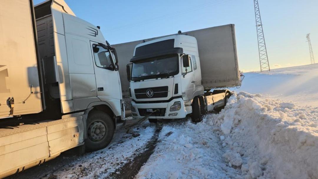 Bitlis’te buzlanan yolda kayan tır yolu kapattı