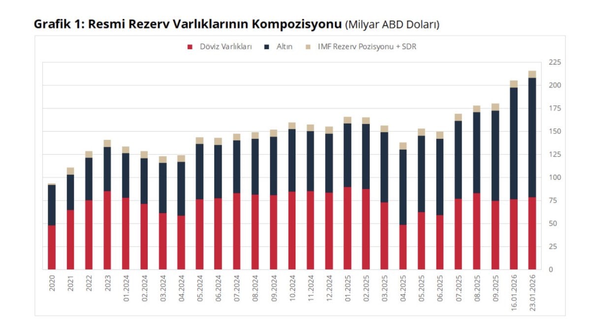 - Merkez Bankası’nın altın rezervleri 745 tona ulaştı ve Avrupa Merkez Bankası’nın rezervlerini geçti.