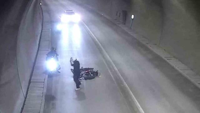 Kaza anı ise tünelin kameraları tarafından kaydedildi.