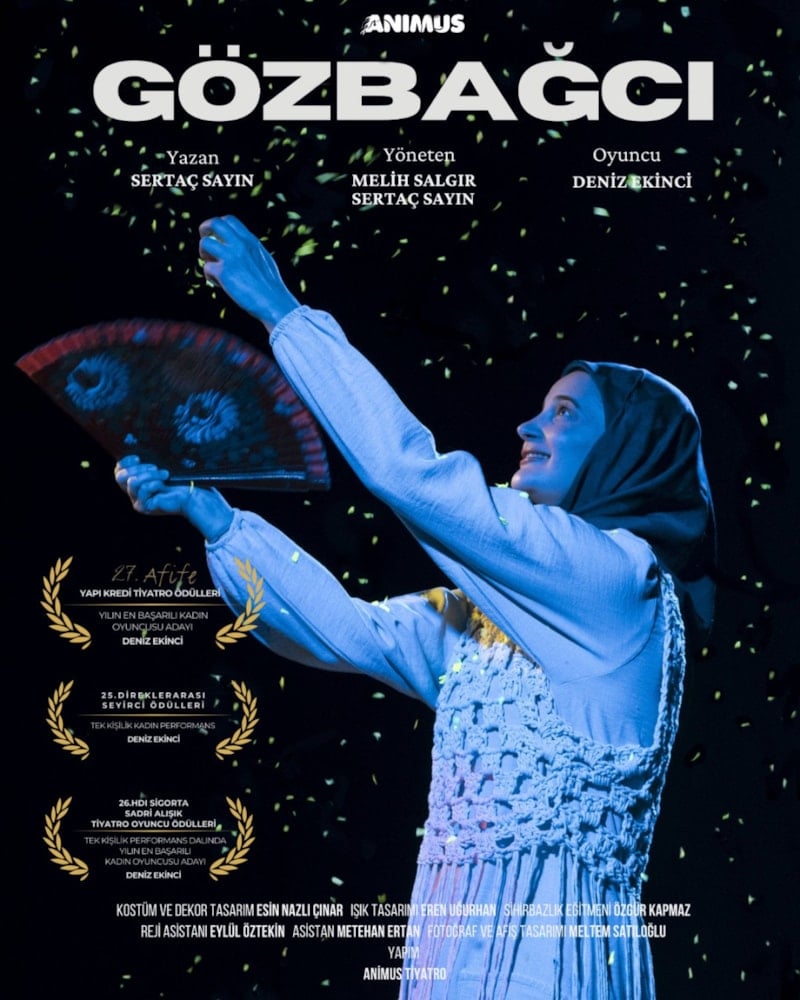 Sertaç Sayın’ın yazdığı ve yönetmenliğini Melih Salgır ile birlikte üstlendiği “Gözbağcı” oyunu, Ankara’da geleneksel bir ailede yaşayan Kübra’nın hikayesini anlatıyor. Evlat edinilen Kübra, evlat edinmeden önce yetimhanede büyümüştür. Kübra, geceleri gizli geçitlerden geçerek yetimhaneye gelen maskeli bir sihirbaz ile tanışır.